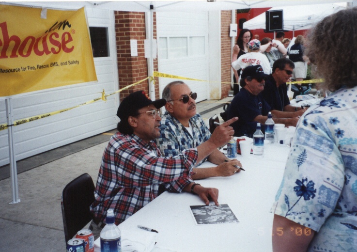 I'm standing in line waiting to get more autographs. Here you see Ron Pinkard, who played Doctor Morton on the series, and actor Marco Lopez, who played Firefighter Marco Lopez on the show. Lopez was not an actual firefighter, but he had the same name as his character. |