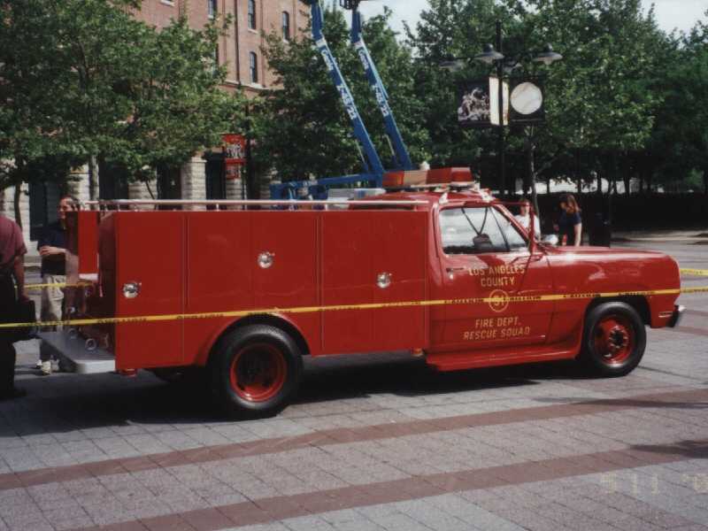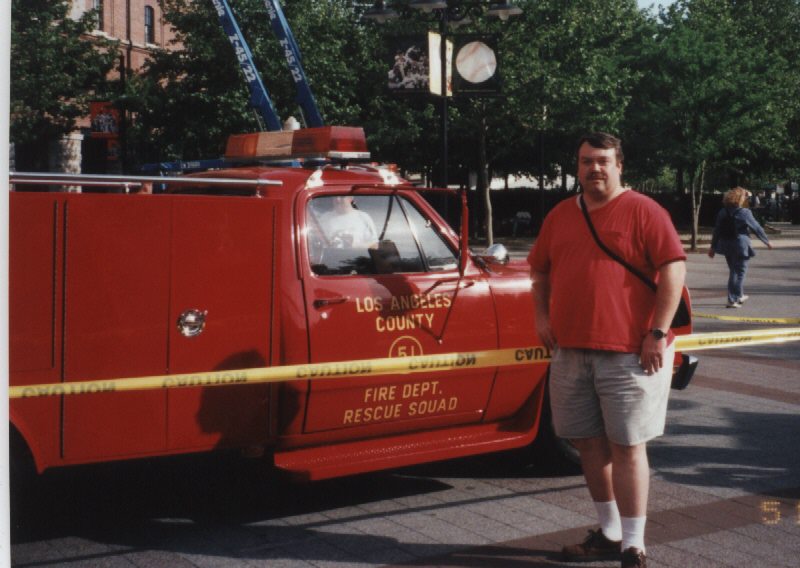 | The restored Squad 51 vehicle on display at Camden Yards prior to the Orioles game on May 11, 2000. Randy Mantooth drove the squad onto the field during the pre-game ceremonies, on "Firefighters and Paramedics Night" at the park. |