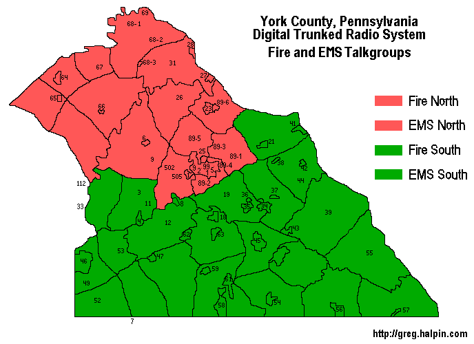 York County Emergency Services Radio NetworkCompiled by Greg Halpin (KB3DCG), York, PA |
